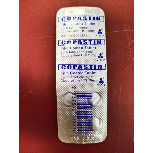 Coparcetin adalah obat yang diformulasikan untuk meredakan gejala demam sakit kepala hidung gatal bersin-bersin hidung tersumbat batuk dan pegal-pegal akibat influenza atau common. COPASTIN FILM COATED TABLET Cloperastine Hydrochloride 10mg Apakah yang ada pada risalah ini Risalah ini mengandungi informasi berikut. 01102021 copastin ubat apa.